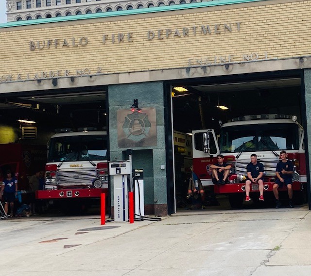 Fire Company 19, downtown Buffalo, NY and those three young fire eaters hiding in the shade of their house, watching the world go by like a trio of lakeside heroes.